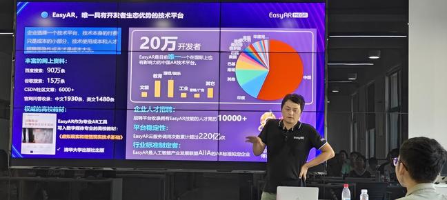 微课程首日,视+AR联合创始人、副总裁兼COO涂意围绕“元宇宙与空间计算技术”做主题报告。他从互联网演进历程切入,系统阐释了元宇宙作为下一代互联网形态的核心特征与发展趋势,并指出空间计算是实现虚实融合、打造沉浸式体验的关键技术支撑。涂意重点介绍了EasyAR Mega空间计算平台的整体架构与典型应用场景。该平台不仅提供高精度地图构建、大规模环境感知、实时定位与动态跟踪等核心能力,还广泛服务于工业制造、文化展览、智慧零售等领域。他举例提到,基于EasyAR Mega开发的应用可帮助工程师在设备上实时查看参数与操作指引,或在博物馆实现文物“数字复活”,增强观众互动体验。在理论教学的同时,涂意还指导学生完成平台账号注册与环境配置,为后续开发实践奠定基础。
