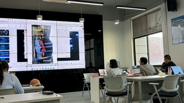 为增强学生对技术实际落地的感知,课程组织学生赴上海大学工业巡检实验室进行实地教学。在卢芳芳老师的带领下,同学们亲眼目睹AR技术如何赋能工业运维流程。实验室研究人员演示了基于AR眼镜的设备巡检与操作辅助系统,信息实时叠加于真实场景中,实现“所见即所得”的交互效果。通过亲身体验,同学们对EasyAR Mega提出的“赋能千行百业”有了更直观的认识,也对后续开发环节充满期待。从采集到开发,实战闭环锤炼技术能力。