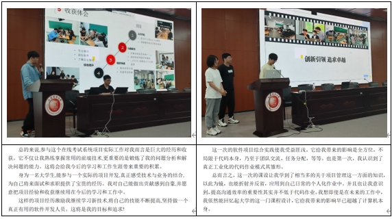 本次深度产教融合的课程实践获得学生的一致认可和好评,学生们表示收获很大,在短暂的十天时间里,能够快速地了解和掌握企业开发软件项目的流程和技术,深入理解软件工程的技术原理,极大地调动了学习的热情和积极性,充分领悟了团队合作的重要性,在树立技术自信的同时也树立了就业自信。企业对本次学生课程实践的成果表示称赞,对学生在实践过程中表现出来的学习潜力也深表认可和欣赏。