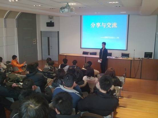3月3日下午,bet36365官网2007级通信工程专业同学在第二综合楼308召开了主题班会。会议以“分享与交流”为主题,由同学们自己讲述寒假生活,分享自己在假期中社会实践的情况,并畅谈自己的所见所闻;还有一些同学交流了科创项目的申报过程及考取英语、计算机等证书的相关经验。