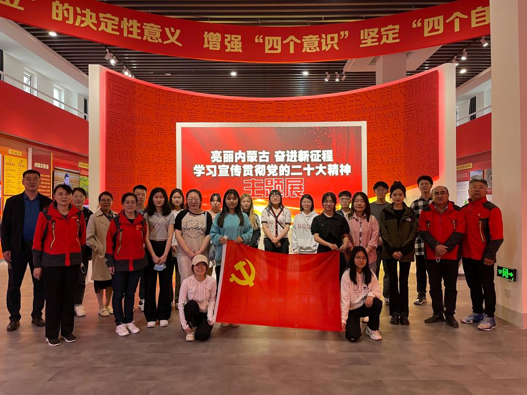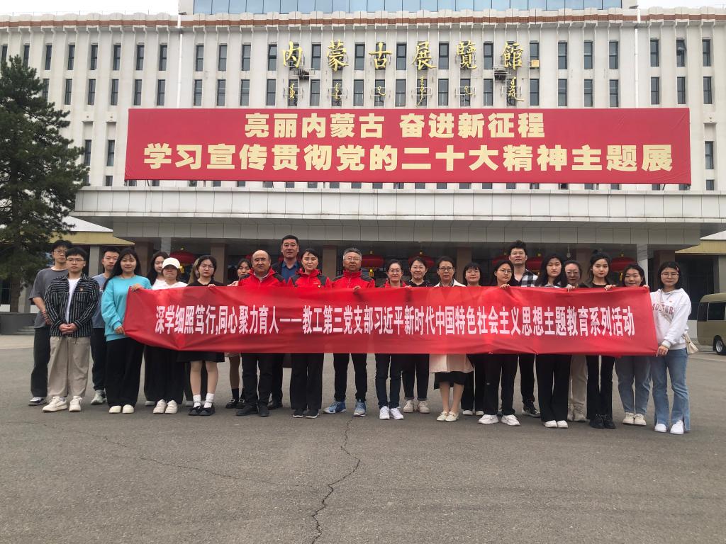 5月10日下午,beat365官网教工第三党支部联合非师范类学生党支部在内蒙古展览馆开展学习贯彻习近平新时代中国特色社会主义思想主题教育党日活动,集体参观“亮丽内蒙古 奋进新征程——学习宣传贯彻党的二十大精神”主题展,并重温入党誓词。