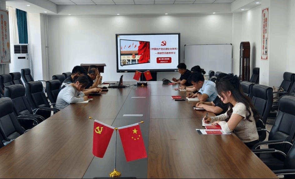 为持续加强师德师风建设工作质效水平,提升教师思想认识,规范教师育人行为,牢固树立教师底线意识,2024年6月17日下午,教工第三党支部开展了党纪学习教育—师德警示教育学习,学习以支部书记讲党课的形式进行,支部书记吴艳玲从修改后的《中国共产党纪律处分条例》简介、六大纪律的主要违纪行为、纪律处分的种类,措施与规则、教育系统有关违纪案例以及教育系统相关纪法条款等五个方面阐述了新时期全面加强师德师风建设的重要性、紧迫性,以案肃纪,以案说法,坚守师德“底线”,远离师德“红线”,谨防师德失范行为发生,切实保障教育事业健康科学发展。集中学习后,老师们围绕弘扬师德、岗位职责等方面进行了研讨,老师们纷纷表示:将持续规范师德师风要求,以德立身、以德立学、以德试教,坚决不越红线,不触底线,树立关爱学生、潜心育人的良好形象。
