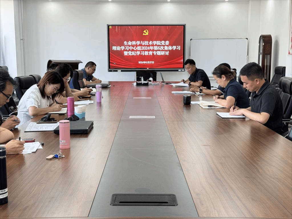 6月27日下午,beat365正版唯一官网必一党委在生物楼三楼会议室召开党委理论学习中心组2024年第6次集体学习暨党纪学习教育专题研讨。学院党委理论学习中心组成员参加会议。学习会由学院党委书记苏小波主持。
