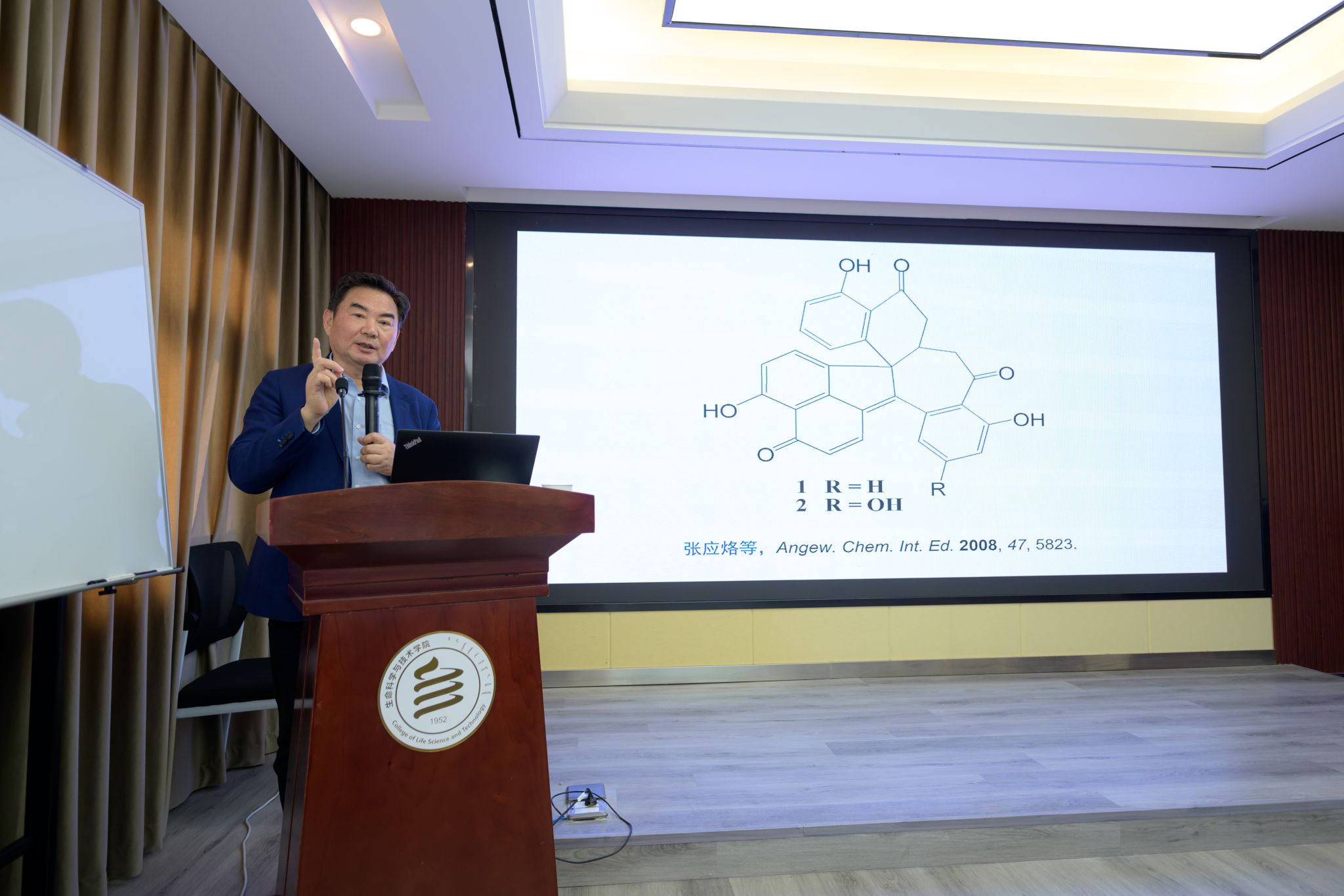报告会上,谭仁祥教授介绍了其团队在植物活性成分结构鉴定和作用机制、植物内生菌对植物活性成分的影响、植物活性成分的生物合成途径等方面的重要研究成果,分享了自己多年来的科学研究工作经验。谭仁祥教授的报告由浅入深,为在场师生呈现了生物活性分子研究的完整框架,引发了广泛共鸣。在互动交流环节,聆听讲座的师生与谭仁祥教授进行了深入交流。谭仁祥教授认真细致地回应了在场师生提出的问题,并勉励师生们保持学术研究的初心,持续深入学术钻研,促进植物学现代化研究的蓬勃发展。